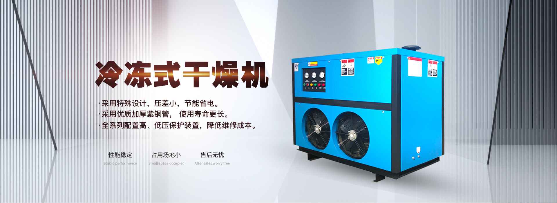 冷凍式干燥機(jī)運(yùn)用了物理原理,將壓縮空氣中的水分冷凍至露點(diǎn)以下,使之從空氣中析出的空氣干燥機(jī)。受限于水的冰點(diǎn)溫度,理論上來說它的露點(diǎn)溫度可接近于0度,