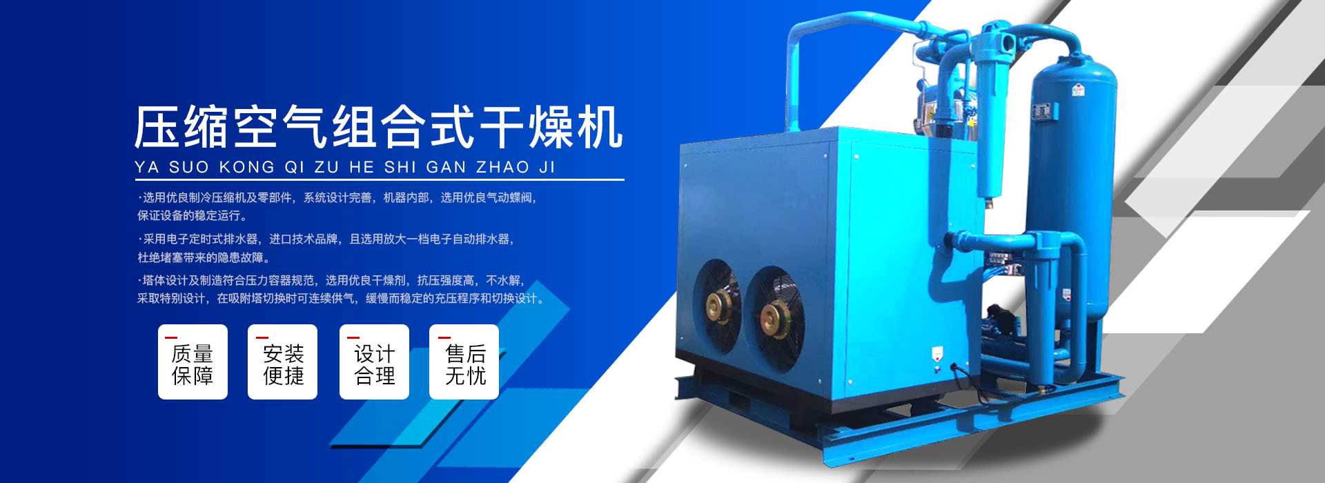 本公司系中國科學(xué)院、重鋼院、機(jī)電技術(shù)設(shè)計(jì)院、氣動(dòng)技術(shù)研究所等相關(guān)專家合作的具有雄厚技術(shù)力量的高科技實(shí)體,是一個(gè)專業(yè)從事各種氣體干燥凈化及分離純化設(shè)備研究開發(fā)及推廣應(yīng)用的高科技公司。公司積多年對壓縮空氣凈化設(shè)備的生產(chǎn)技術(shù)和銷售經(jīng)驗(yàn),并在消化吸收國外先進(jìn)技術(shù)的基礎(chǔ)上,結(jié)合國內(nèi)實(shí)際工況特點(diǎn),研制出適合國內(nèi)外廣大用戶的“滬盛”牌HSD系列壓縮空氣冷凍式干燥機(jī)、吸附式干燥機(jī)、后部冷卻器、預(yù)冷機(jī)組、工業(yè)用冷水機(jī)組和HF系列壓縮空氣高效精密過濾器(國產(chǎn)濾殼,美國漢克森HANKISON濾芯)等13大系列計(jì)300多種規(guī)格產(chǎn)品。并且新研發(fā)出燥式干器, 廣泛應(yīng)用于電力、冶金、電子、機(jī)械、石油、化工、汽車制造、紡織、化纖、輕工、造紙、橡膠、儀表、食品、空氣、卷煙、生物、醫(yī)藥、日化等行業(yè),在國內(nèi)同行業(yè)中一直處于領(lǐng)先地位。